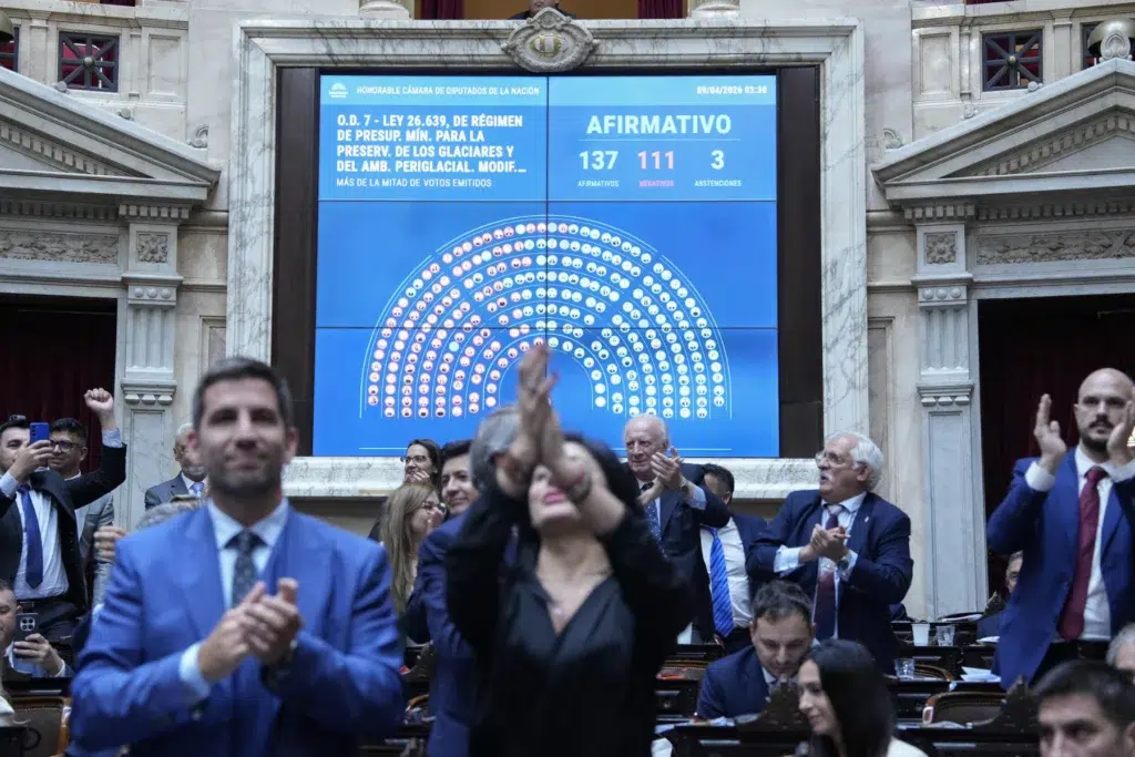 La Cámara de Diputados de la Nación aprobó anoche la denominada Ley de Glaciares. La normativa contó con el respaldo del bloque oficialista y el voto afirmativo de legisladores nacionales por Santa Cruz, entre ellos José Luis Garrido (SER) y Jairo Guzmán (LLA).