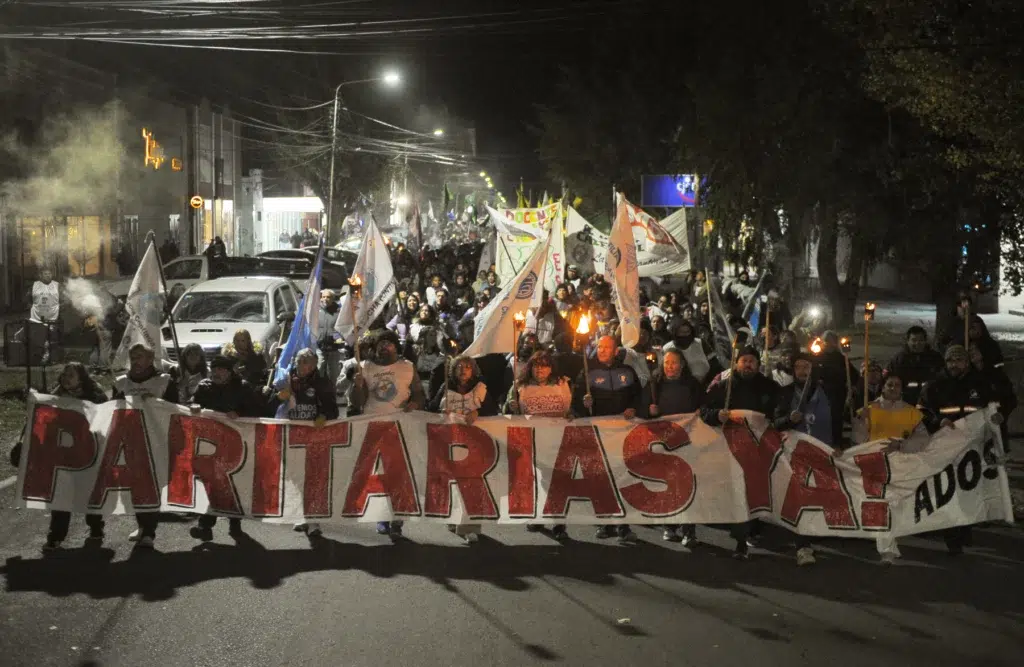 Gremios provinciales y nacionales realizaron una marcha con antorchas frente a la Casa de Gobierno, exigiendo la apertura de paritarias y manifestándose en contra de las medidas de ajuste y la iniciativa de Emergencia Económica.